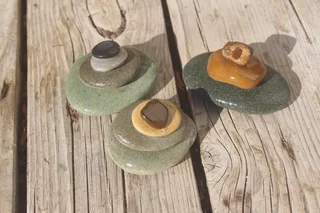 Die Steine selbst bringen ihre natürlichen Farbtöne mit und werden harmonisch farblich arrangiert.